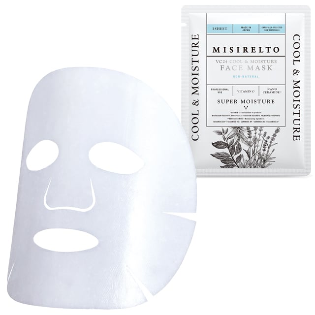肌の潤いを求める全ての方へ。MISIRELTO VC24 クール&モイスチャーフェイスマスクは、しみない処方で保湿と鎮静を叶える、こだわりのフェイスマスクです。持続型ビタミンC誘導体APPSと5種のリポソーム化セラミドを絶妙なバランスで配合し、疲れた肌にしっかりと栄養を届けます!