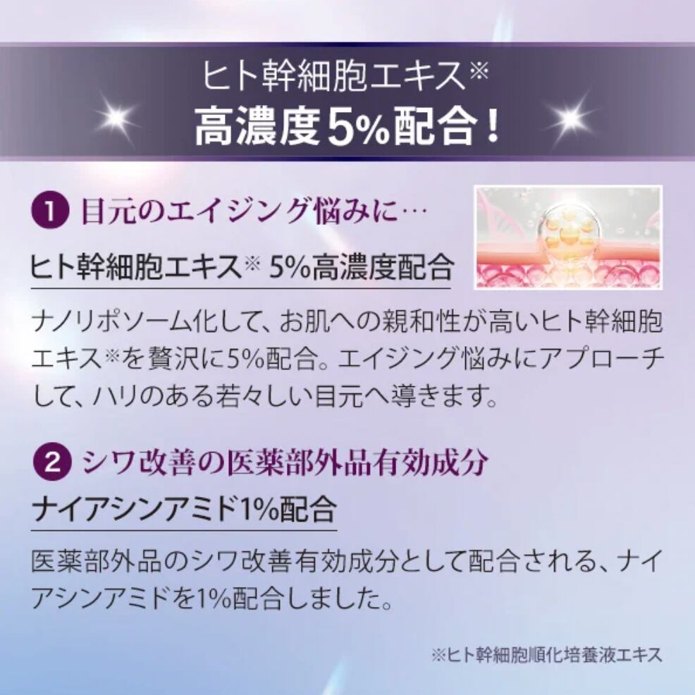 ヒト幹細胞エキス*1を5%高濃度配合した、贅沢なアイクリームです。