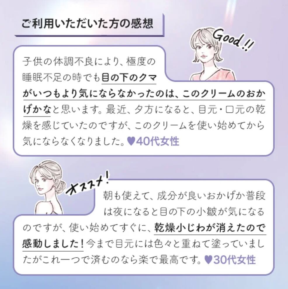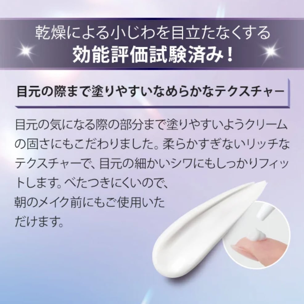 乾燥により小じわを目立たなくする、効能評価試験済みのアイクリームです。