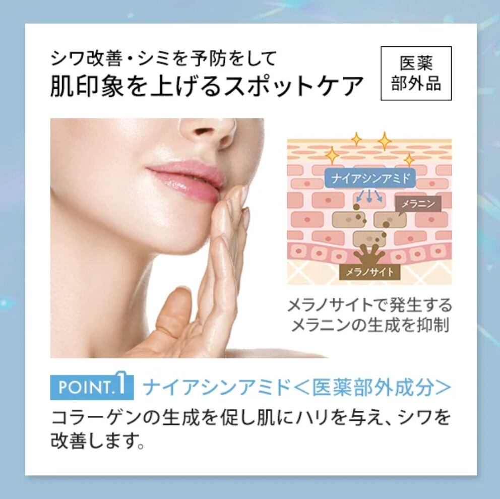 シミとシワにまっすぐ届き、ピンポイントケアで狙い撃ち!
