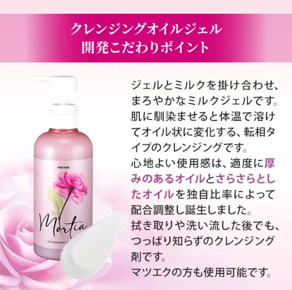 ジェルとミルクを掛け合わせ、まろやかなミルクジェルを肌に載せるなじませるとオイル状に変化する転相タイプのクレンジングです。心地よい使用感は適度に「厚みのあるオイル」と「さらさらとしたオイル」を独自の配合比率によって肌あたりが良いテクスチャーになりました。