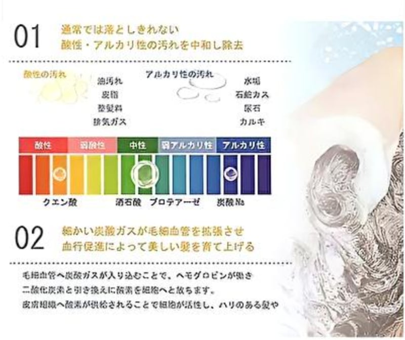 ※初めて使用する方は少量でお試しください。量が多い場合炭酸発生時に熱を感じたり髪の毛がパサつく事があります。