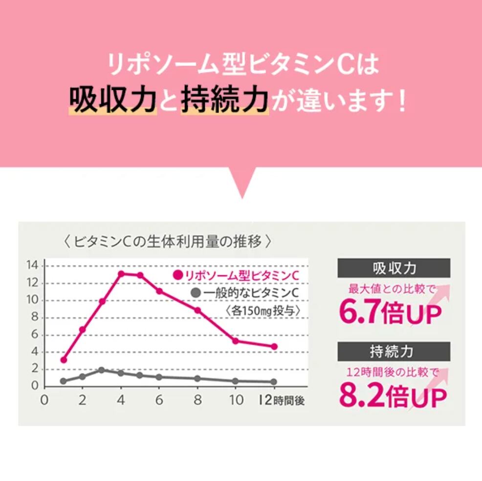 ●体内に吸収されやすく、持続する『リポソーム型ビタミンC』を配合