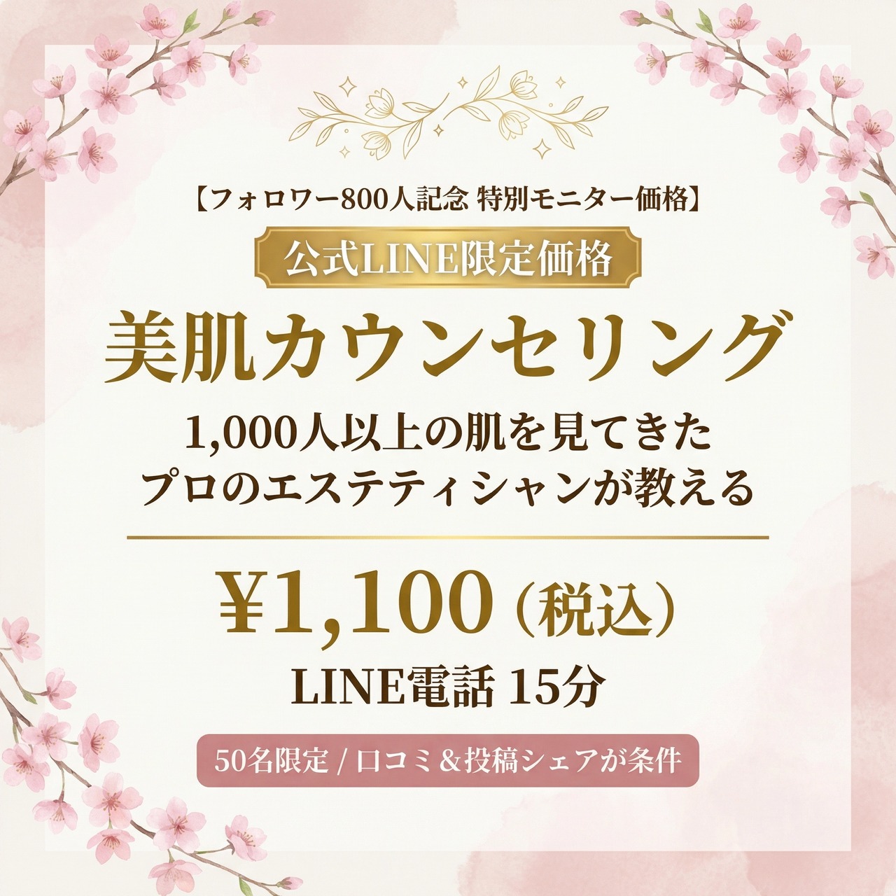 祝・フォロワー800人記念! 公式LINE限定 美肌カウンセリングモニター