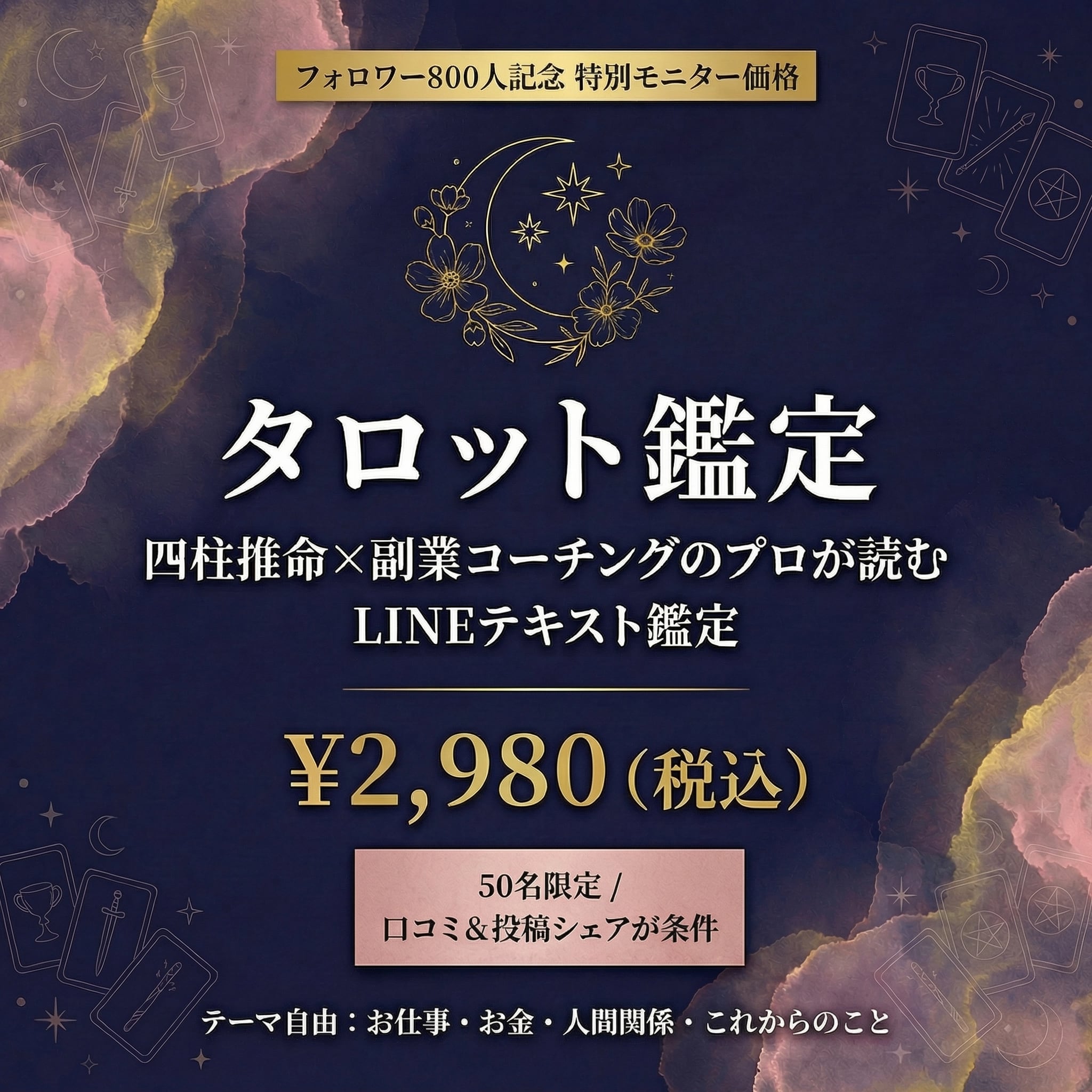 今回は特別に【タロット鑑定(LINEテキスト)】のモニターを募集いたします!